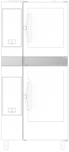 * Bestaand uit een roestvrijstalen tussensteun met ruimte voor leidingwerk, met achter aansluitplaat voor het leidingwerk voor de bovenste oven, 2 zij afdekplaten met sleufperforatie en een front afdekplaat